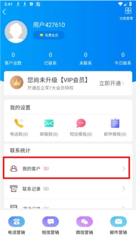 2、在联系统计中点击进入我的客户。