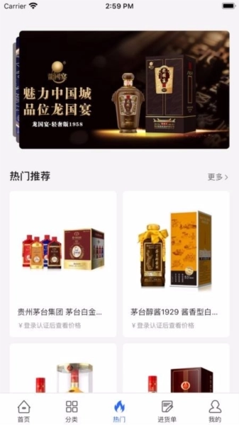 365名品汇是一款由成都名品叄陆伍电子科技有限公司研发的酒水销售电商平台。在365名品汇中有海量品种丰富的名酒,支持附近门店查询,真货保障!产品丰富支持白酒、啤酒、葡萄酒、洋酒、饮料、黄酒等等,提供专业的商品快速估价功能,优惠不断,价格实惠,旨在让用户们在365名品汇可轻松选购需要的产品。平台还提供地址管理功能,用户可以随时查询地址详情,能够随时选择更换使用新地址;平台实时记录订单,支持用户查询待付款以及已完成的订单信息,随时可以选择售后服务;可以将商品加入进货单,加入之后随时查看进货单详情,能够一键购买;平台还提供收藏功能,支持用户收藏商品,收藏成功后随时查询购买;在线购物更安全,支付结算更加快捷,赶紧试试吧。