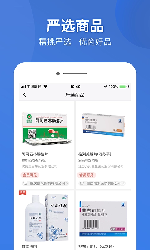 从供应链的源头开始全程严格把控各个环节,助力药店筛选出优质药品,把中间环节的利润全部让渡给下游,以此提升终端采购商的盈利空间。