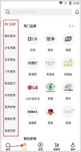 2、向右滑动即可进入分类专题页面,便于用户根据商品所属分类快速查找所需商品。