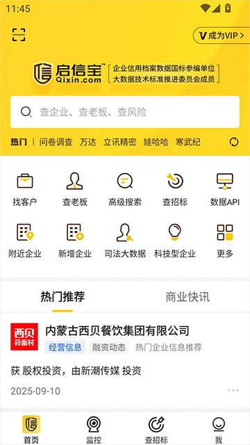 启信宝不仅支持企业信息查询,用户还能设置监控功能,实时追踪企业及关联人员动态,避免因企业突发状况而未及时知晓的情况。此外,用户也可查询详尽的企业招标信息,第一时间掌握招标变动。
