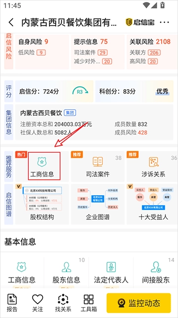 2、接着下拉屏幕,找到“工商信息”,点击进入