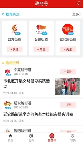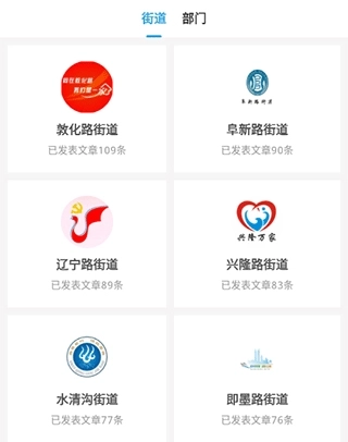 4、通过政务号界面能够查看各个街道及各个部门发布的文章信息。