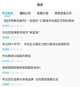 3、爱市北政务界面会更新政策信息、通知公告、区情介绍等内容。
