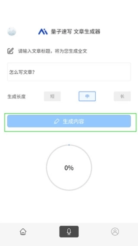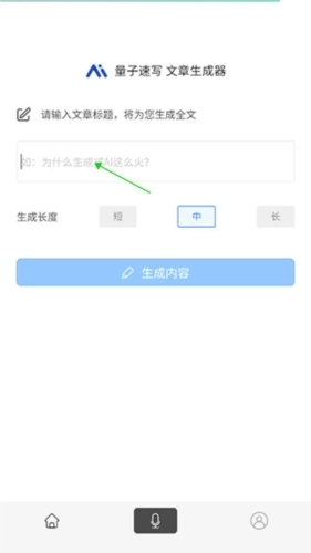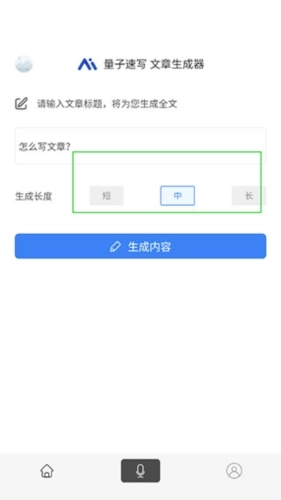 1、文章生成器的文章长度有短、中、长三种分类,能够预先进行设置,之后再输入一个主题标题。