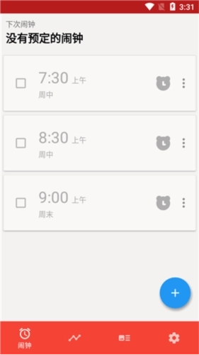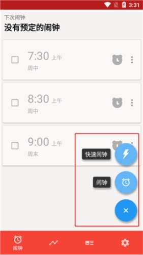 2、在软件里,我们能看到简洁清爽的界面,也能看到已设置好的预定闹钟。