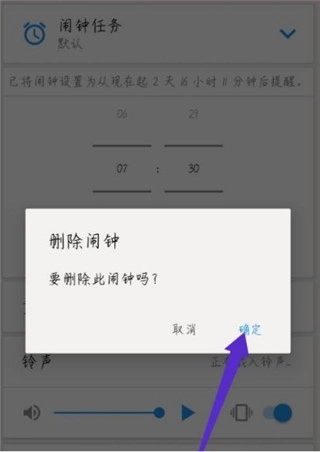 6、在弹出的删除闹钟窗口里,点击“确定”按钮,即可完成删除操作。具体可参照图示。