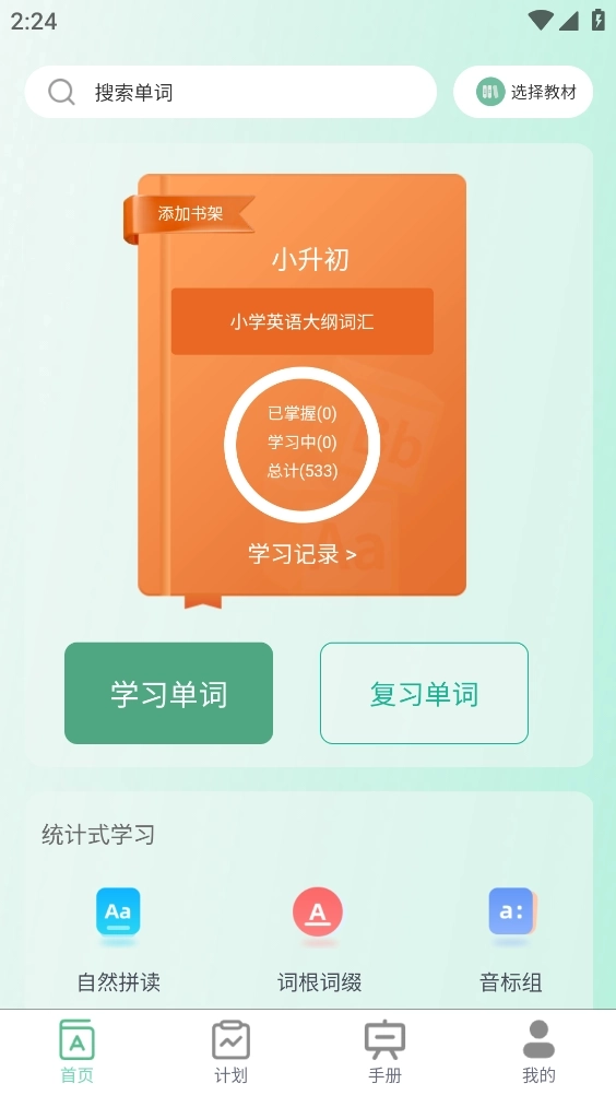 1、在软件里对自己添加的单词记忆教材进行管理,便于随时切换不同的教材内容。