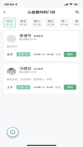 4、预约挂号,在这里找到专科医生后即可完成手机挂号操作