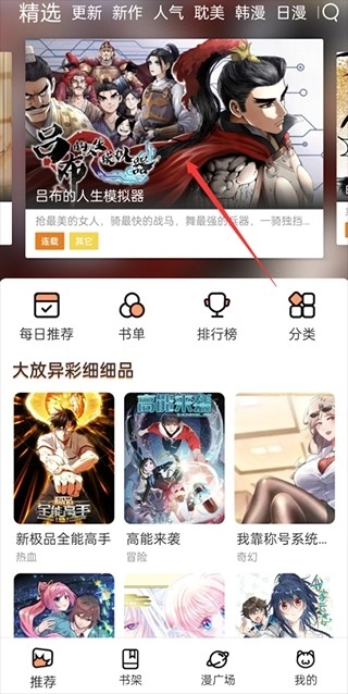 1、首先在当快安装好正版的喵上漫画,然后进入软件当中点击想看的漫画;