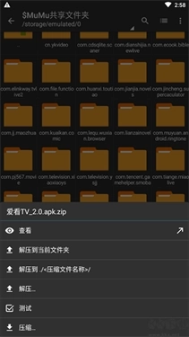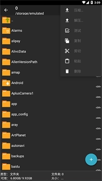 长按文件夹调出操作菜单 进行压缩、复制、剪切删除等操作。