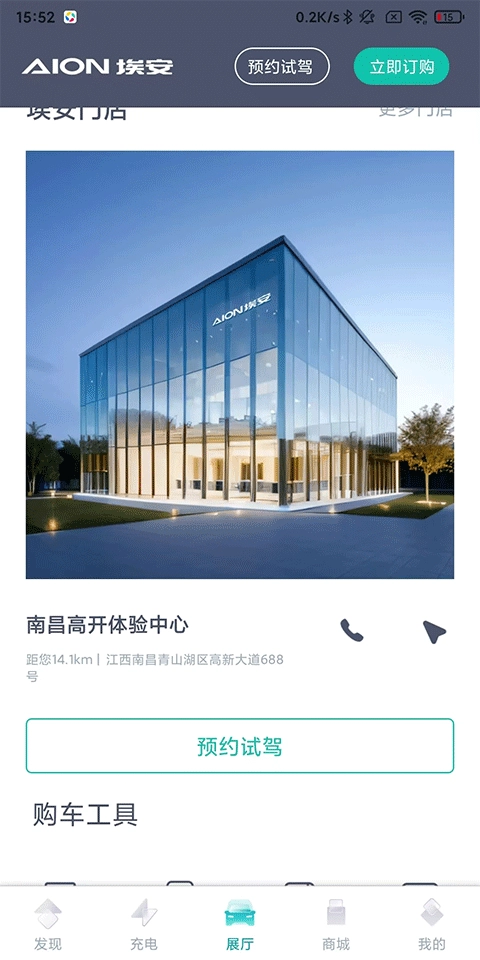 1、打开埃安应用,在首页能够浏览并搜索与埃安汽车相关的资讯文章,同时还提供快速购车、查找附近门店、预约试驾等服务。