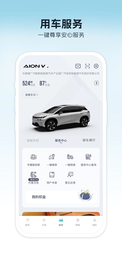 2、为车主提供一键维保、线上直连埃安厂家、一键救援、代客充电等省心服务。