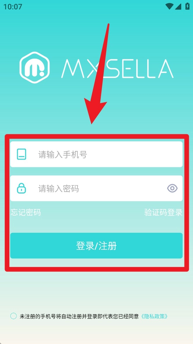 1. 打开App后进入登录界面,输入手机号码和密码,点击下方按钮就能完成登录或注册操作。