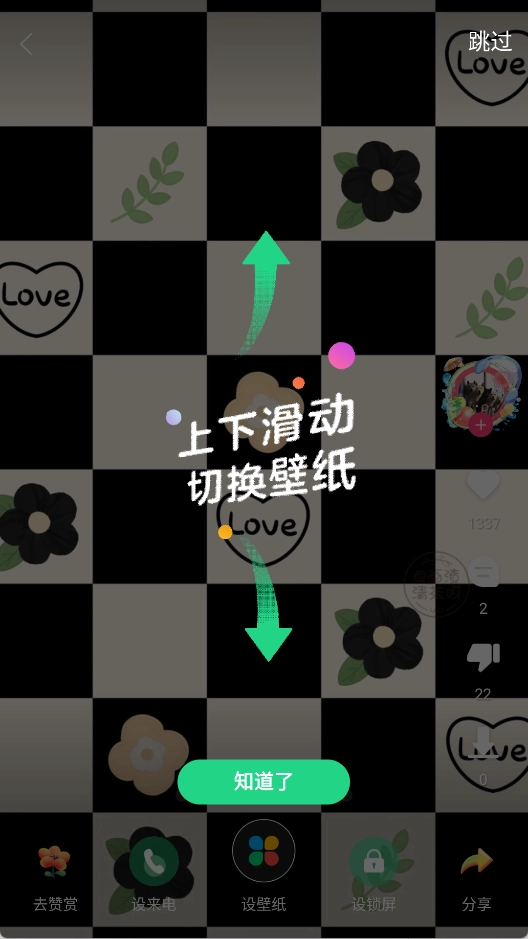 2、上下滑动切换壁纸查看