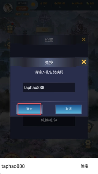 3、输入上方礼包码点击确定