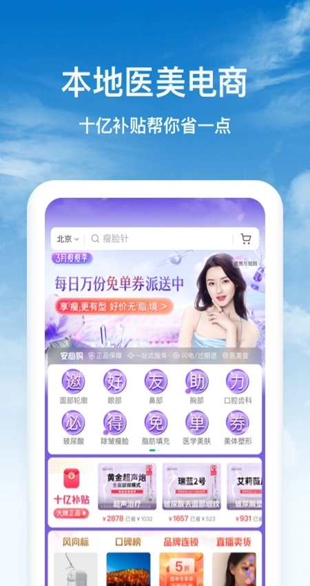 1、安心购:精挑同城优质医美机构,热门新潮的医美项目汇聚于此,让你选得放心,美得安心