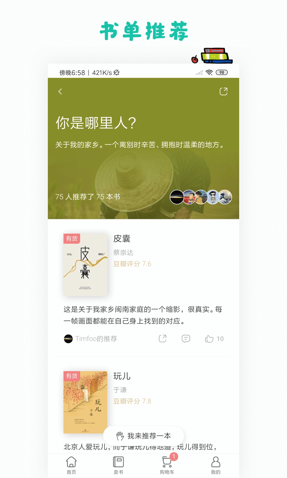 【主题书单,互动淘书】超过 100 个不同主题的特色书单,每个人都可以参与,推荐自己中意的书籍。