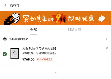 1、打开并登录多抓鱼,进入首页中通过在顶部导航栏中的【电纸书】标签页面中选择需要的书籍,或者直接通过搜索框输入相关书籍名称