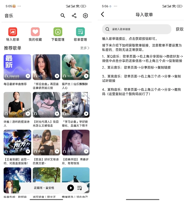 1.海心音乐支持导入qq音乐、网易云音乐、酷我、酷狗四大平台歌单,丰富你的音乐世界。