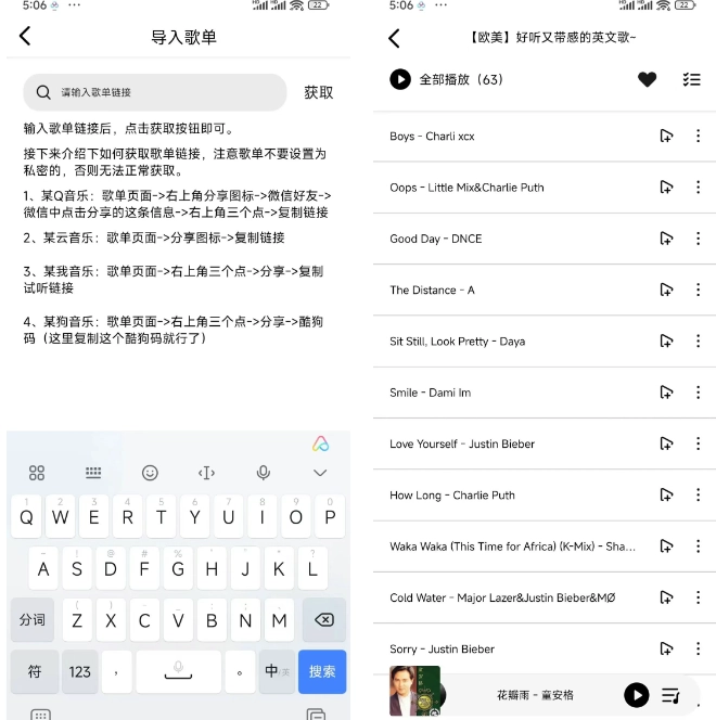 4.但网易云歌单中的灰色歌曲,导入后需单独搜索播放,不影响体验。