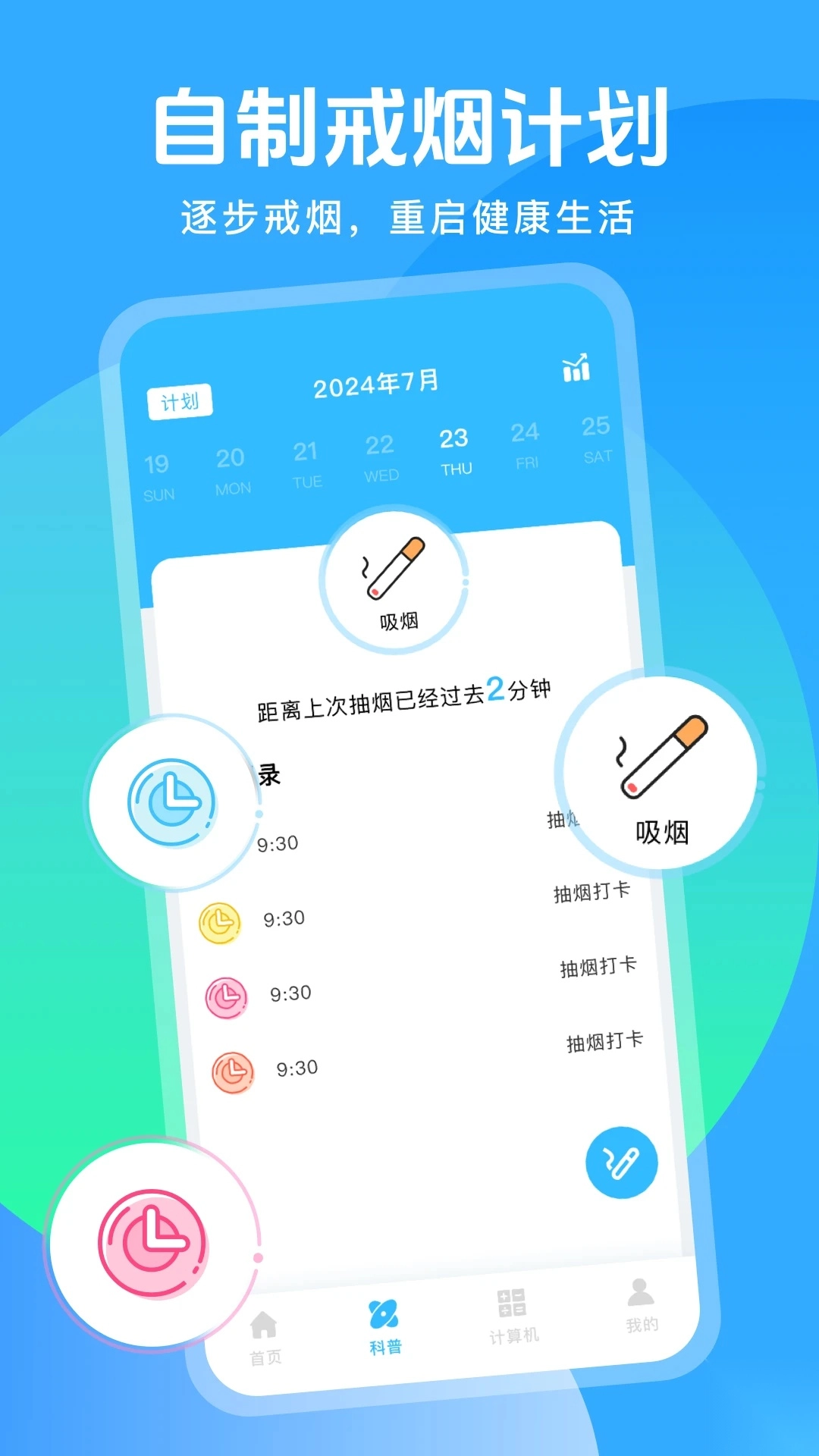 1、实时监测吸烟习惯,帮助你了解自己的抽烟频率和数量,从而更好地控制吸烟行为。