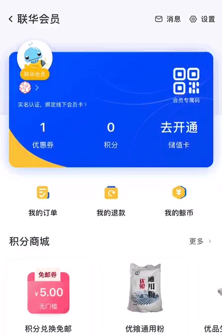 2、点击悬浮层的“联华会员”按钮进入会员信息界面