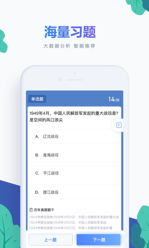 海量习题,大数据分析,智能推荐;