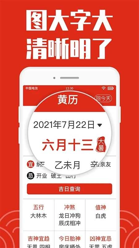 日历大字版无广告是一款十分实用的常用工具类软件,它具备诸多强大功能,不仅能提供清晰的日期查询、节假日提醒以及传统黄历宜忌等服务,还支持天气查询与日程管理,既贴合传统习俗又满足现代生活需求,操作简单且没有多余信息干扰,是用户高效规划时间的得力助手!