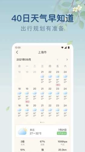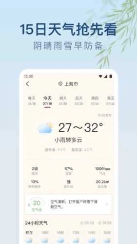 4、15天预报:详细预报天气状态,温度、风向、空气质量等,四季变化提前准备