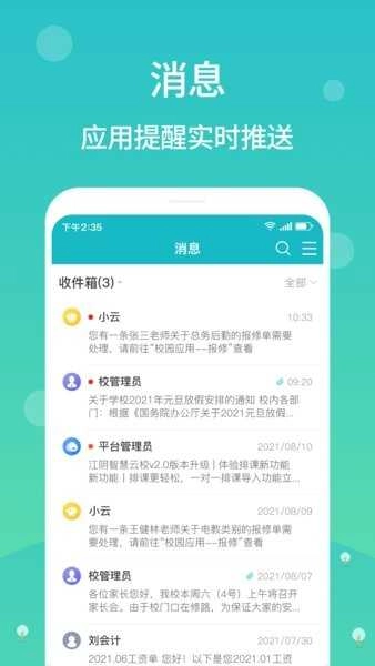 这是一款专为中小学生打造的云端校园管理服务平台,由江阴地区开发,是个智能好用的校园社区。它为校园教育工作提供了便捷的办公辅助,具备超多实用功能,助力打造智慧便利的校园环境。平台设有资讯发布页面,能轻松发布各类通知通告,阅读便捷且有实时消息提醒,还支持收发邮件等功能。此外,智慧校园管理功能可让用户随时通过平台管理学生考勤记录、查看孩子学习情况,实现远程会议、远程视频上课,也能更方便地与家长保持联系,对孩子学习进行监管。同时,平台自带OA系统,让办公审批更高效。