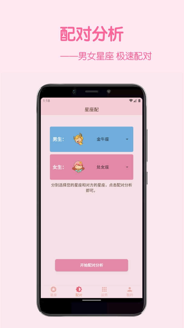 -星座配对:测算你与恋人的爱情指数,进行心理分析,并提供配对解读。