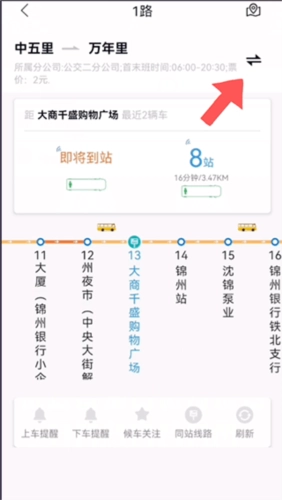 现在打开“畅行锦州”App中的“公交查询”,就可以查看全部公交线路的车辆实时信息,车辆实时位置、线路站点、运行时间、换乘方案、候车提醒等功能应有尽有。