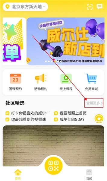 用户想要发布健身动态,需要先进入社区,在首页点击下方的“查看更多”即可进入。