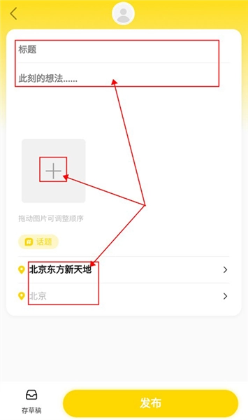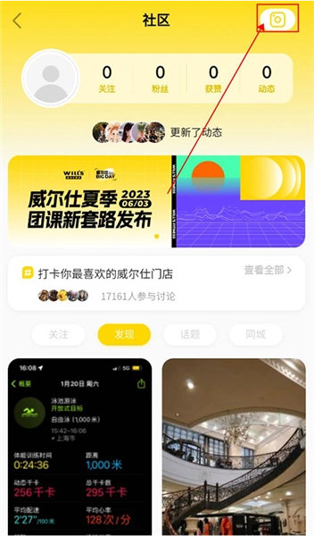 进入社区后,用户需要点击右上角的照片图标,进入动态编辑页面。
