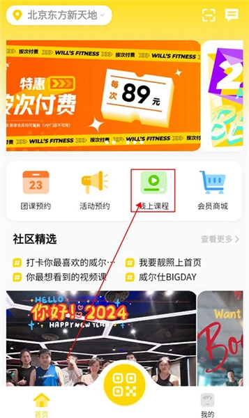 1、用户想要观看线上教程进行练习,可以在首页点击“线上课程”进入。