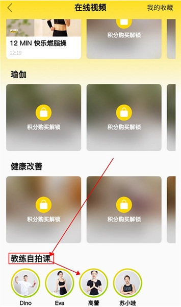 4、用户进入教练主页后,就可以点击自己要学习的健身课程进行观看啦!