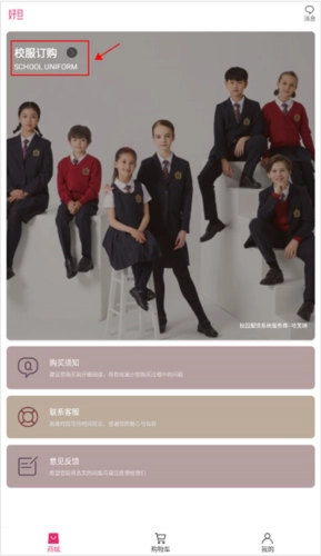 1、进到软件后,在商城界面点击“校服订购”界面。