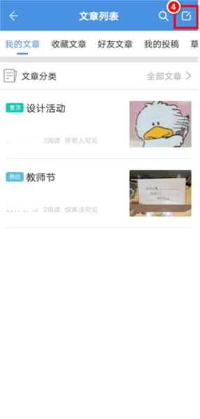 2、在我的主页中选择文章;