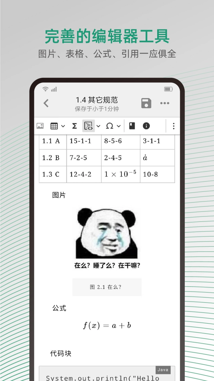 3、配备了大量专用编辑组件,专为数学公式、表格、代码等内容设计,助力用户高效编辑出精准的信息;