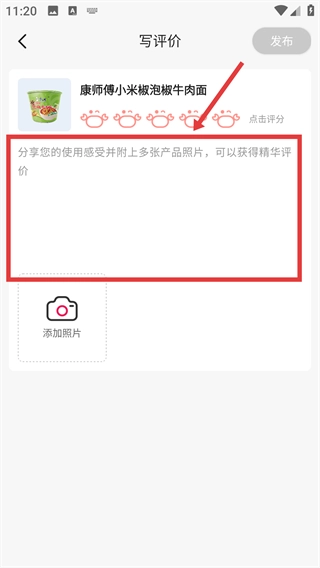 3、填写使用感受,可以添加照片丰富评价内容。