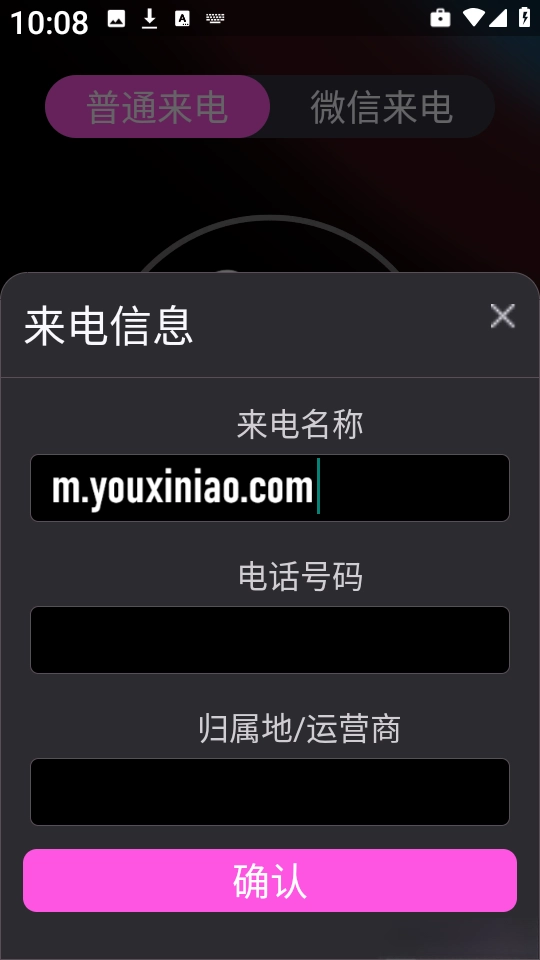 3.按顺序填写来电相关信息,如电话号码、归属地等内容,之后点击“确认”按钮。