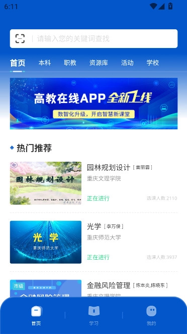 高教在线是重庆市打造的高校在线学习平台,汇聚海量优质课程资源,为师生带来便捷高效的移动学习体验。凭借优质的课程资源与智能的学习管理功能,助力用户高效获取知识、提升能力。欢迎使用!