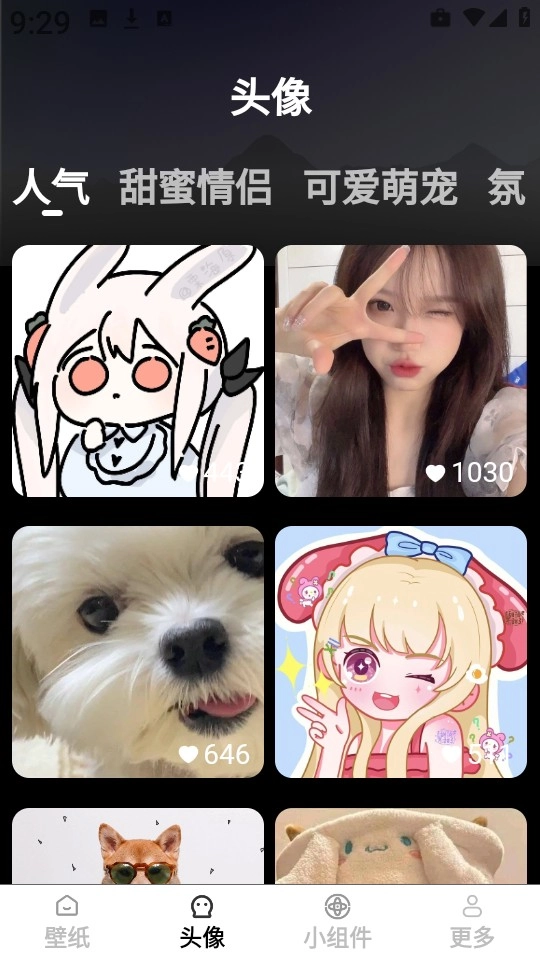 1、进入焕新主题桌面壁纸后,点击下方的“头像”板块,即可进入头像资源库。