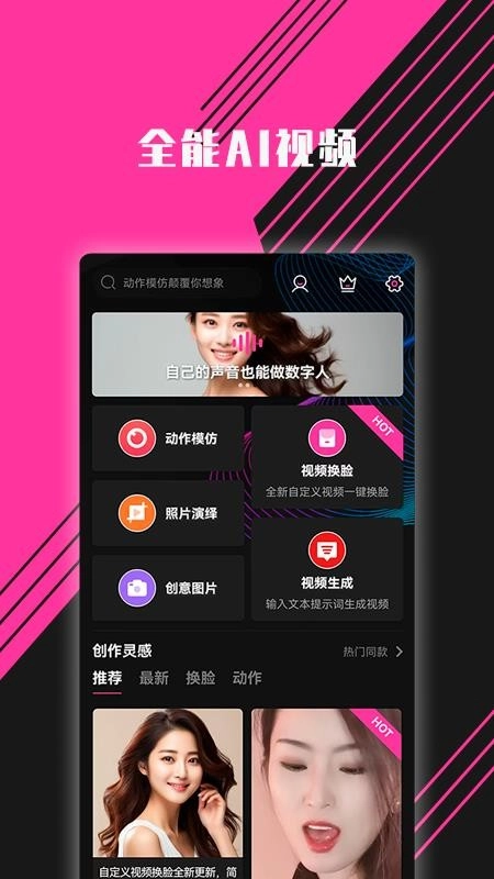 海量动作模板支持、也可自定义视频模板,上传一张形象图片即可制作出完美的动作视频。