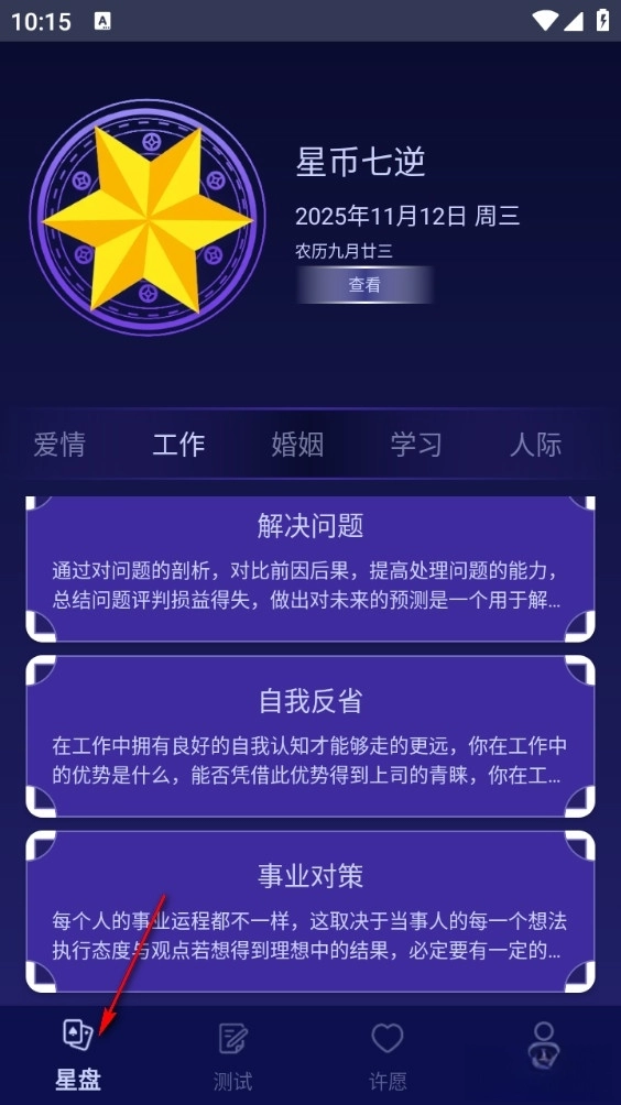 1、打开软件后,挑选你希望进行占卜的领域,像爱情、工作这类方向都可以。