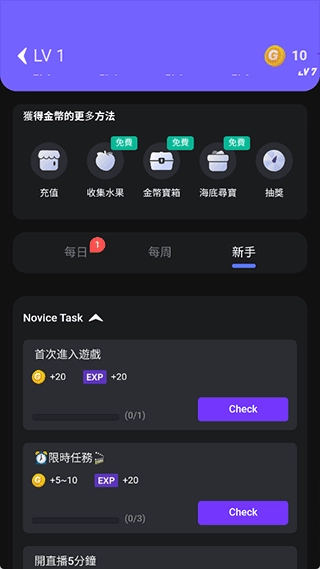 2、你可以通过做任务来获得免费时长
