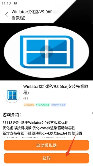 2、接着先选择获取选项,再将其安装到本地,注意不要直接启动模拟器。