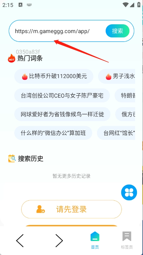 进入首页后,在输入框中输入关键词或网址并点击搜索。