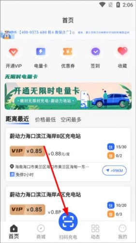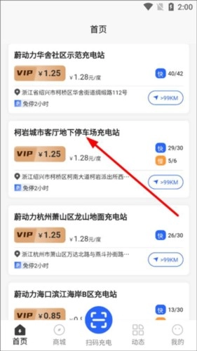 1、在本站安装蔚动力充电应用,完成注册登录操作后打开它,系统会自动进行定位,并展示出附近的充电桩。